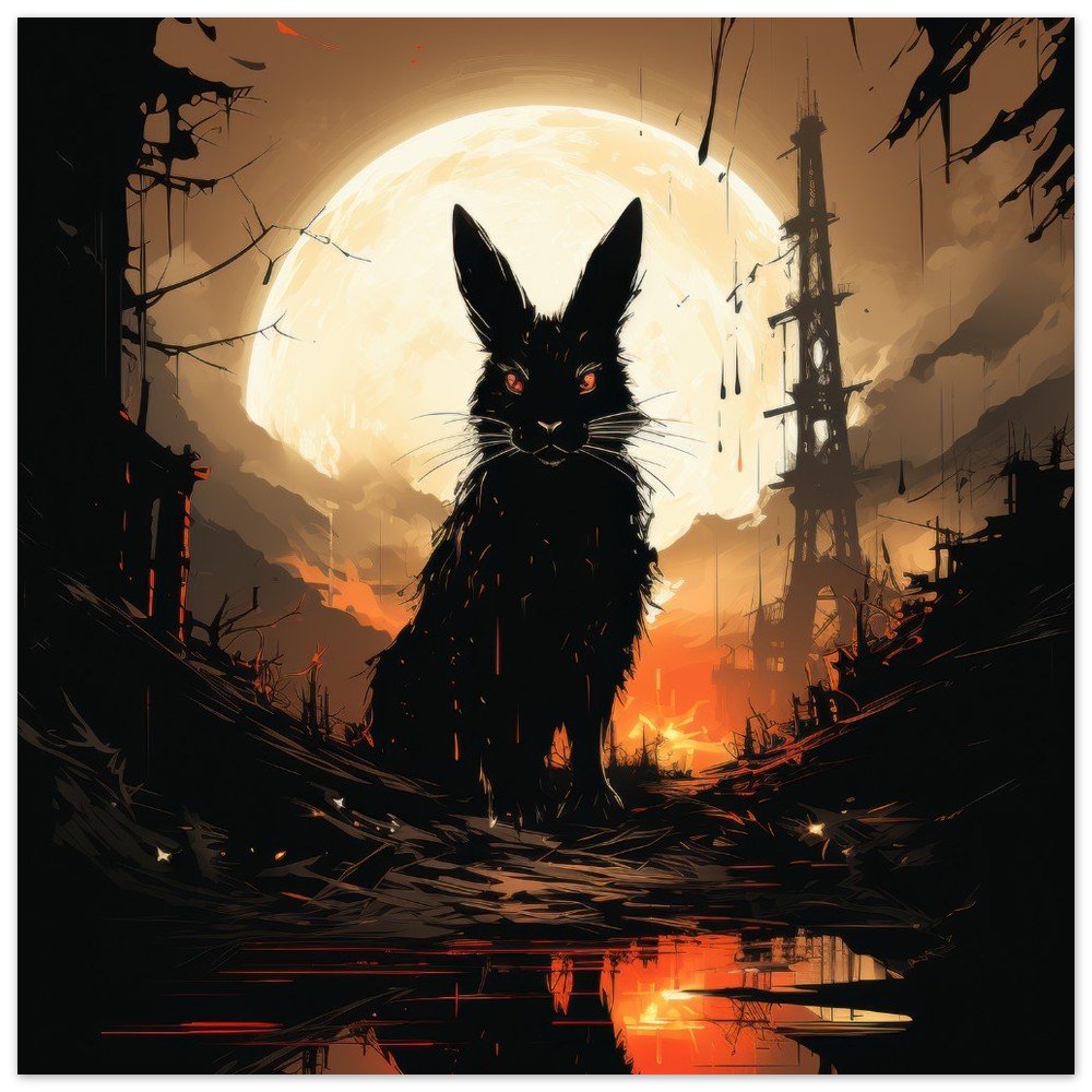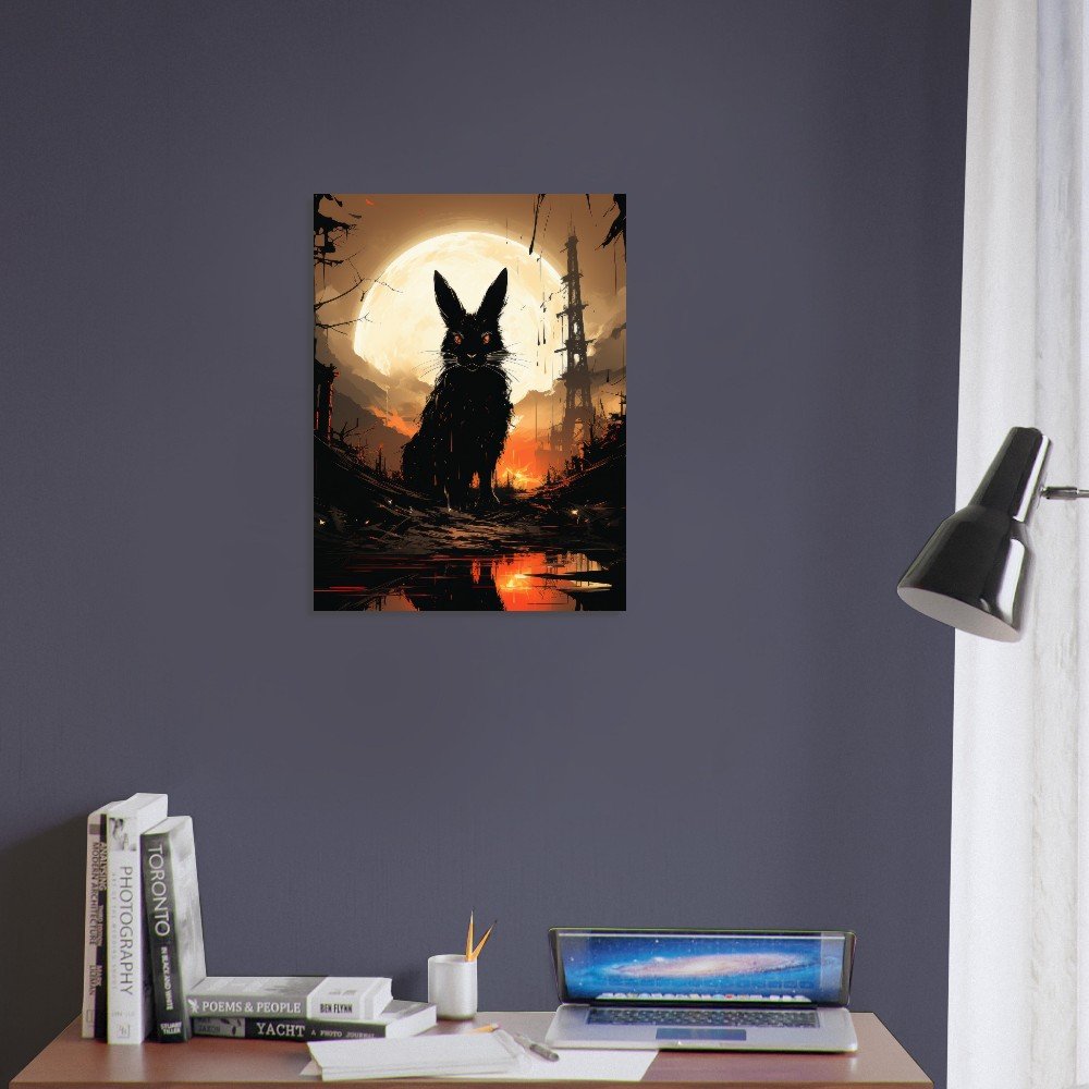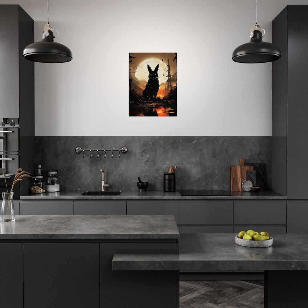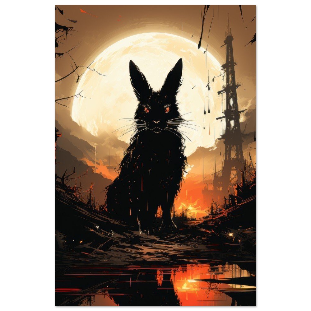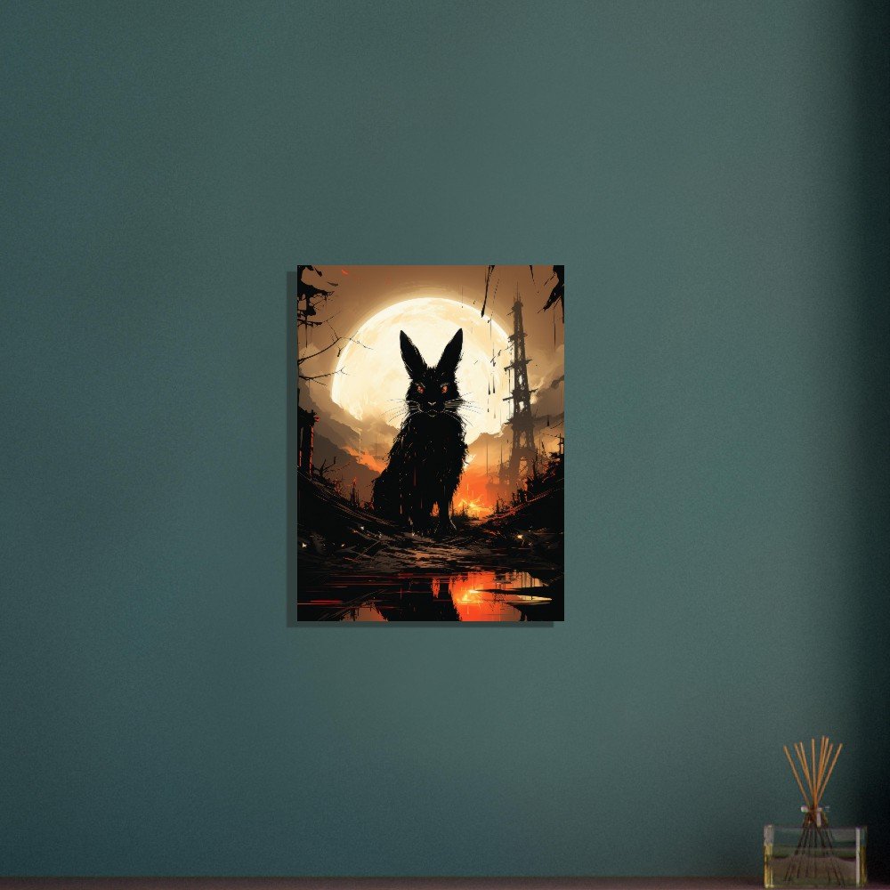 Transform your space into a hauntingly beautiful realm with our Dark Gothic Black Rabbit Art Aluminum Print. This striking piece features a captivating full moon horror scene, bringing a touch of the post-apocalyptic aesthetic to your walls. Crafted on a sleek aluminum panel, this artwork showcases vibrant colors and crisp details, making it the perfect addition to your modern, minimalist decor or professional environments.