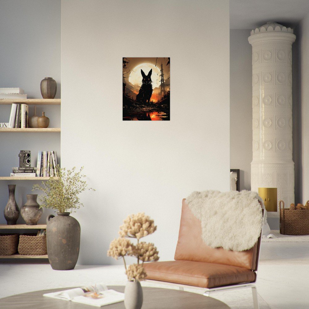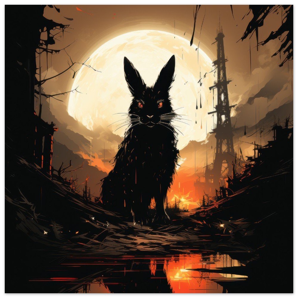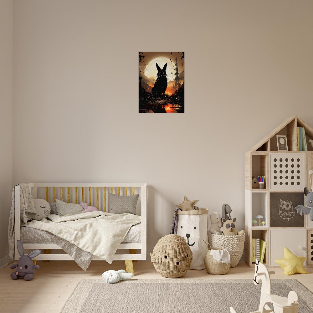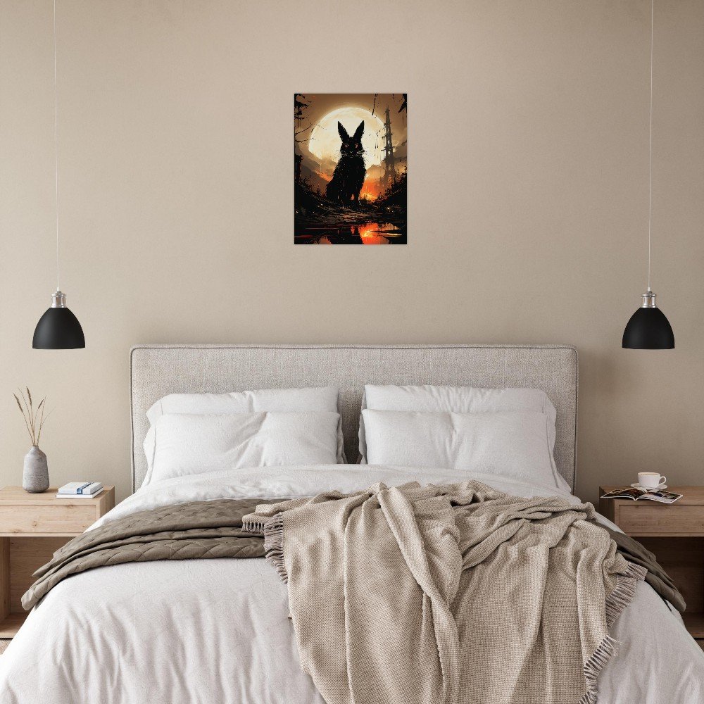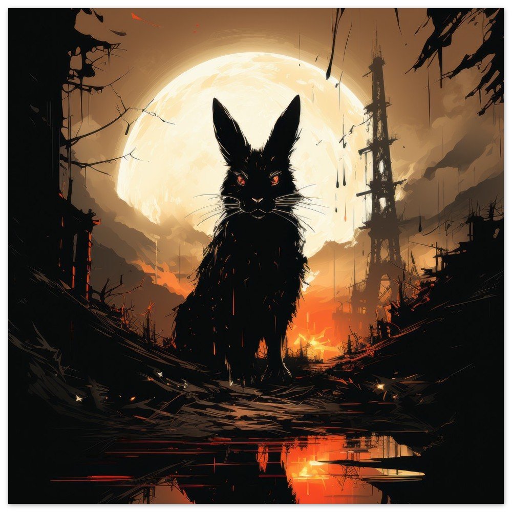 Transform your space into a hauntingly beautiful realm with our Dark Gothic Black Rabbit Art Aluminum Print. This striking piece features a captivating full moon horror scene, bringing a touch of the post-apocalyptic aesthetic to your walls. Crafted on a sleek aluminum panel, this artwork showcases vibrant colors and crisp details, making it the perfect addition to your modern, minimalist decor or professional environments.