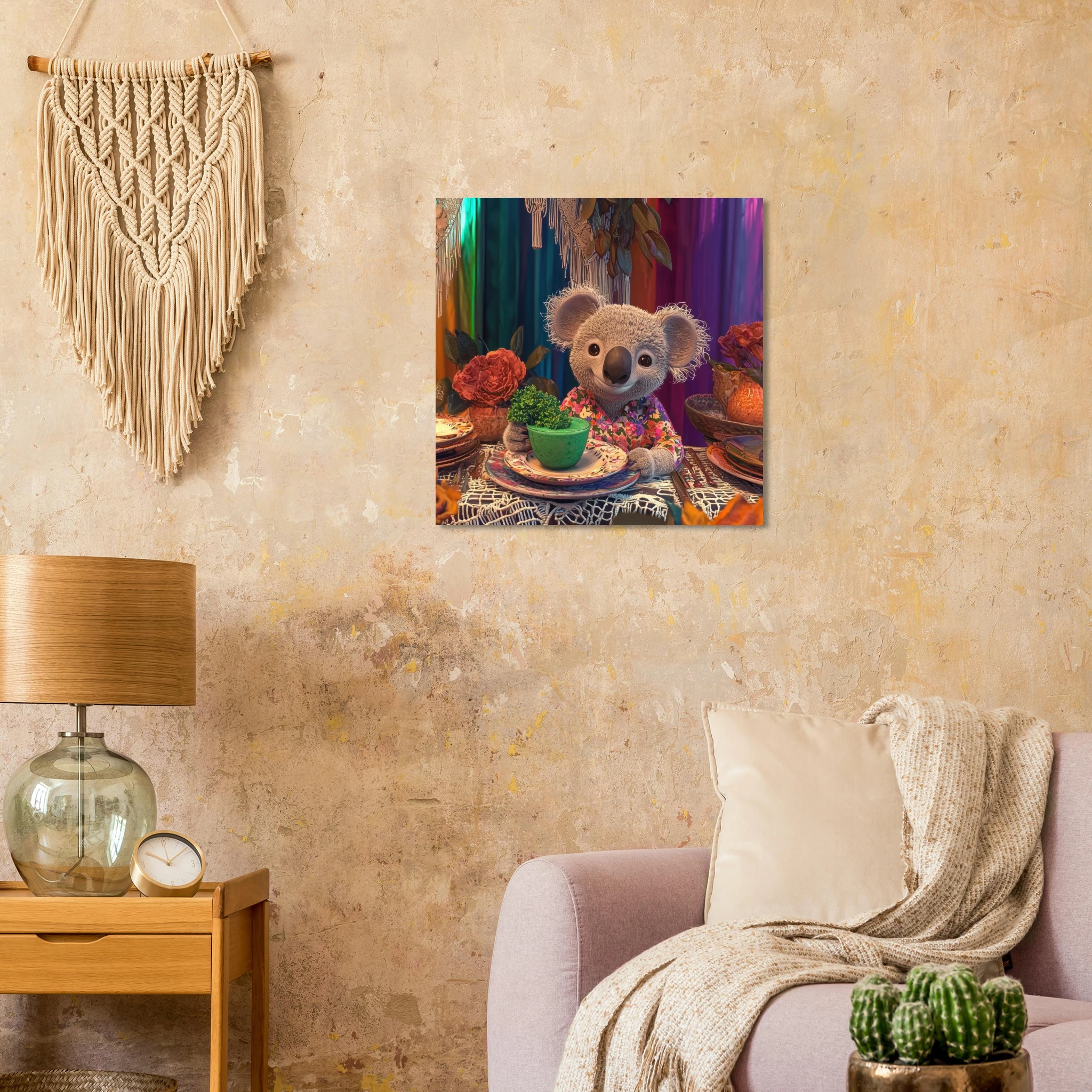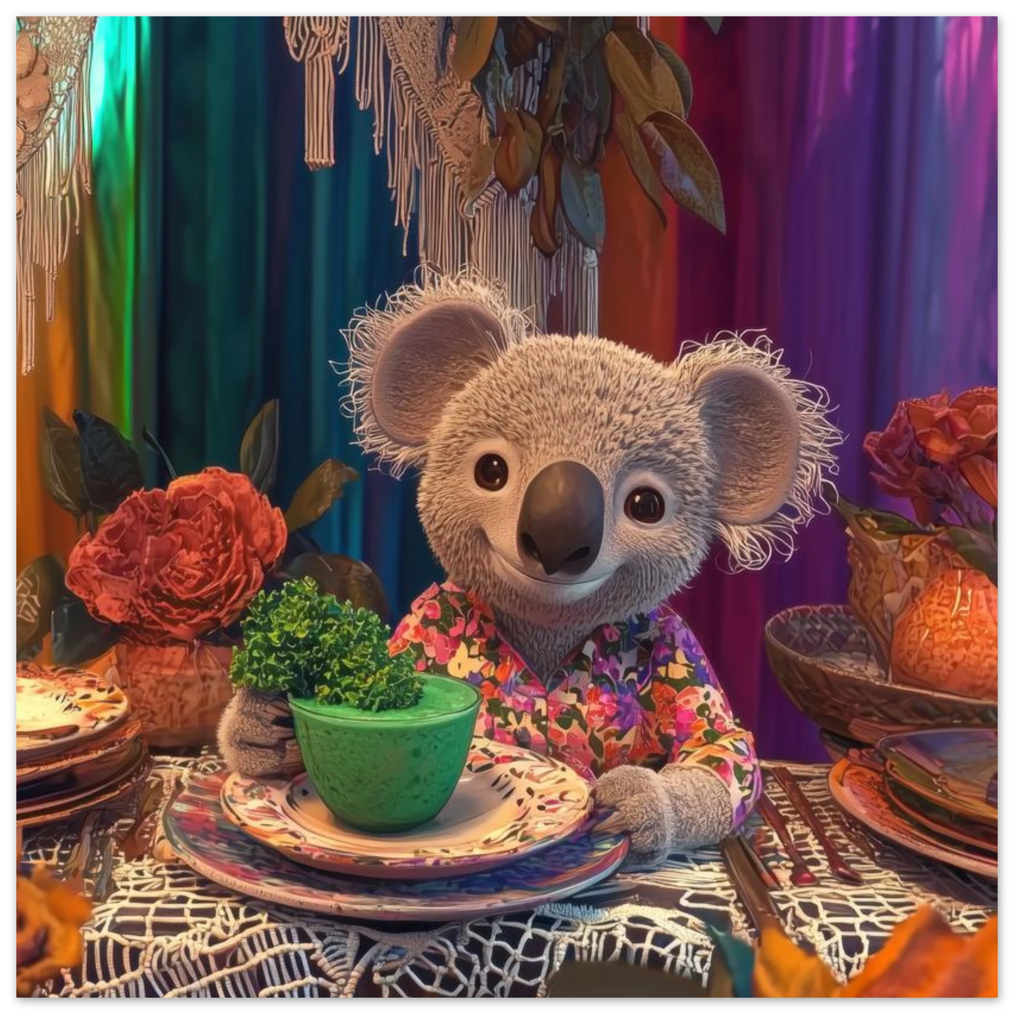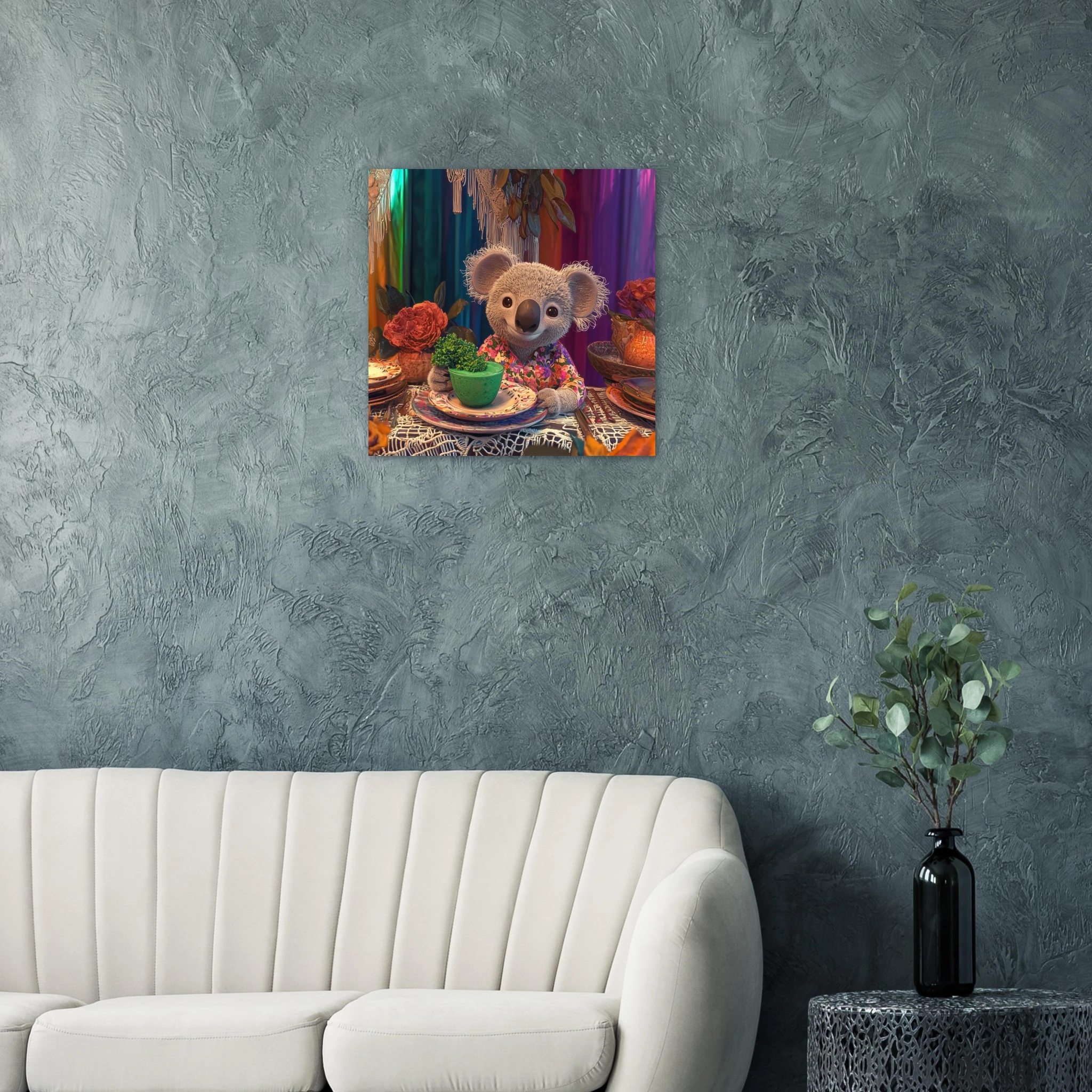 Bring playful elegance to your space with this serene anthropomorphic koala