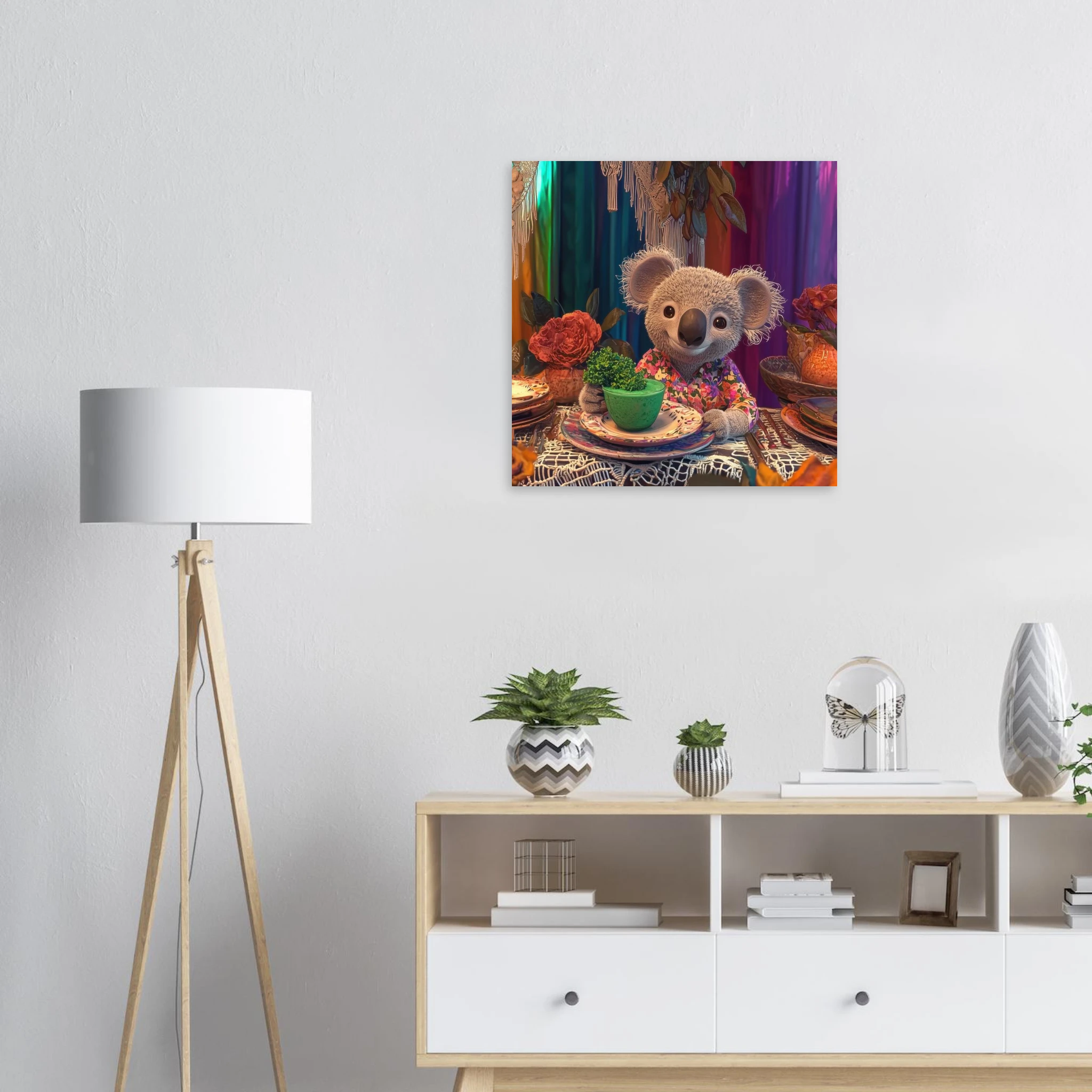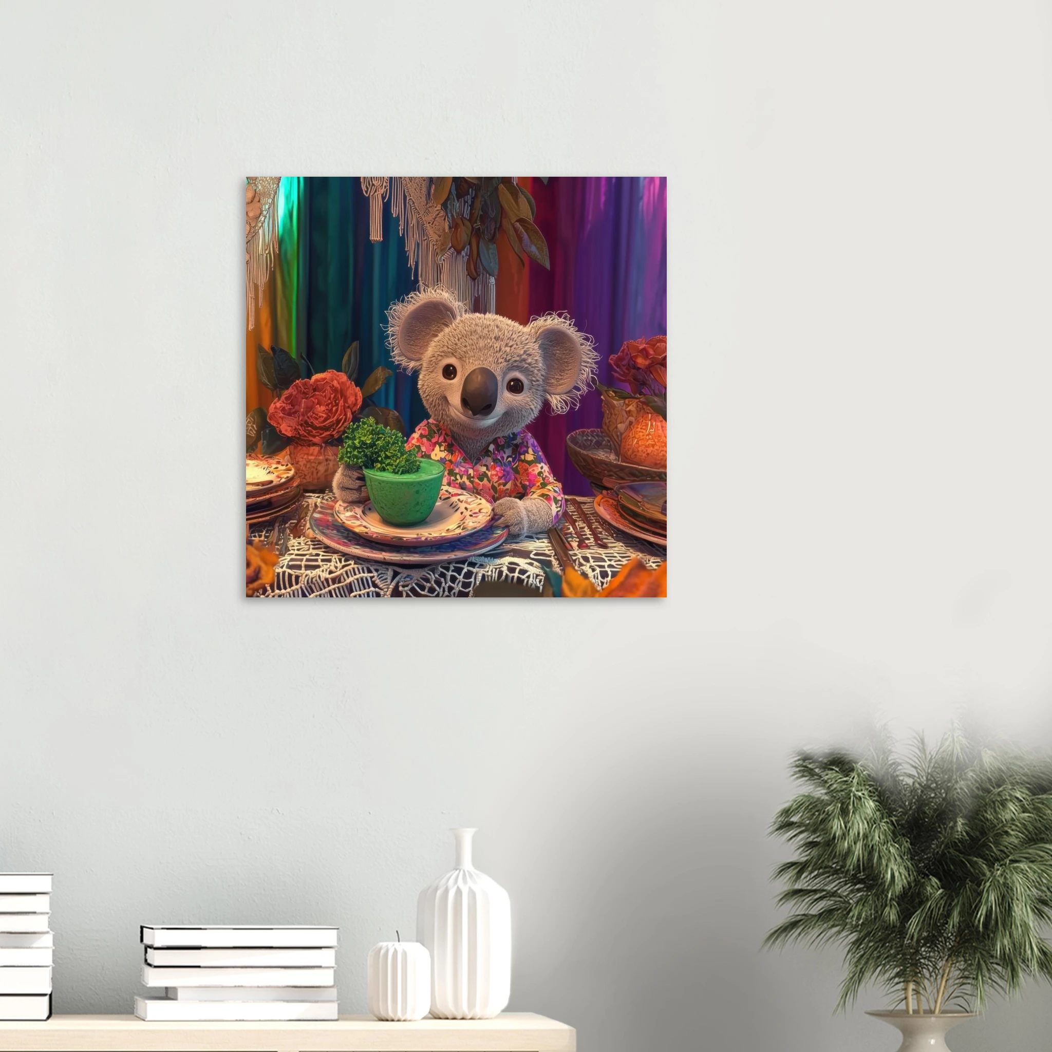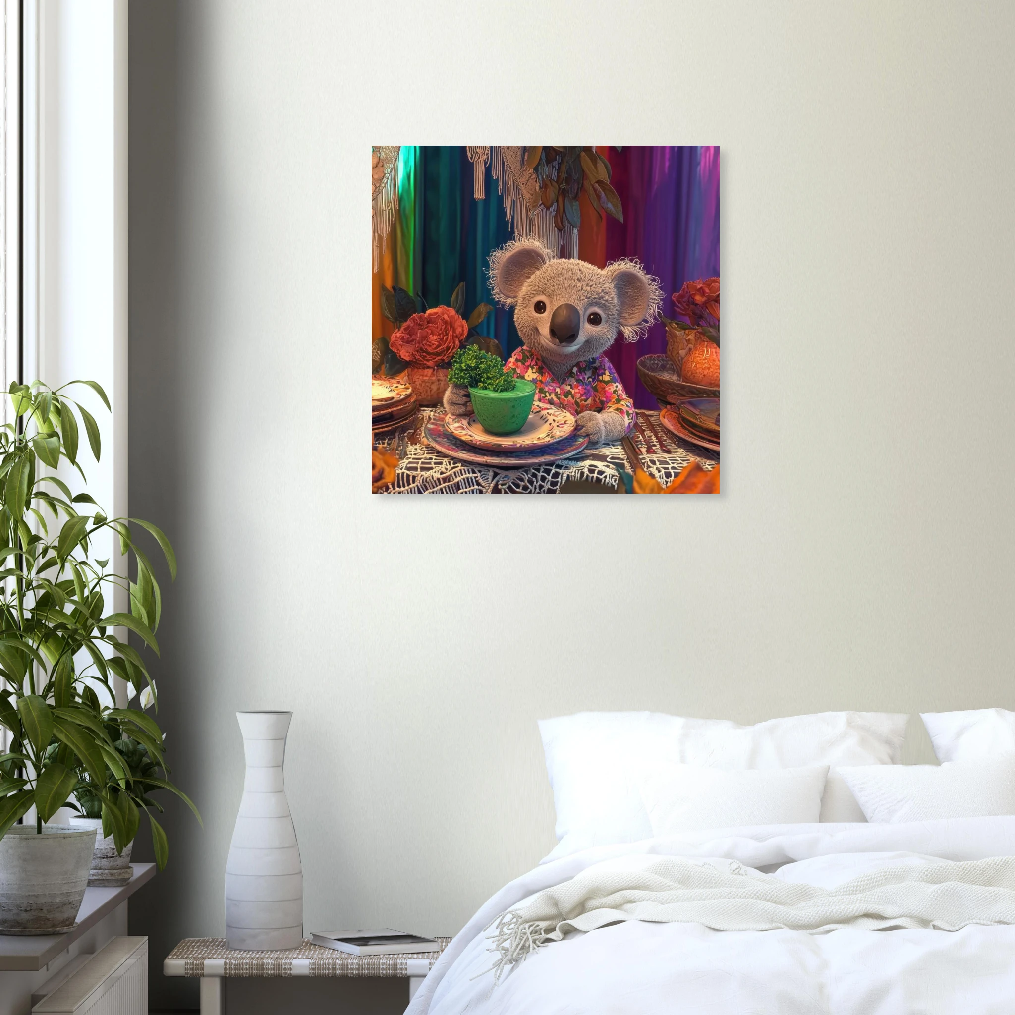 Bring playful elegance to your space with this serene anthropomorphic koala