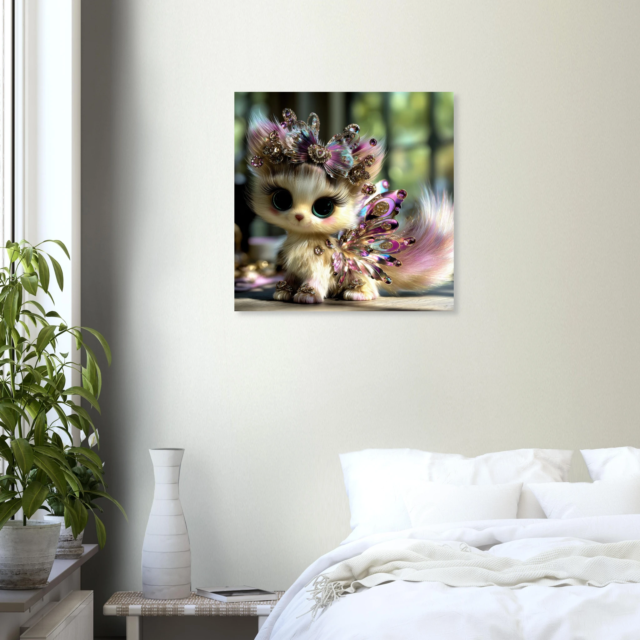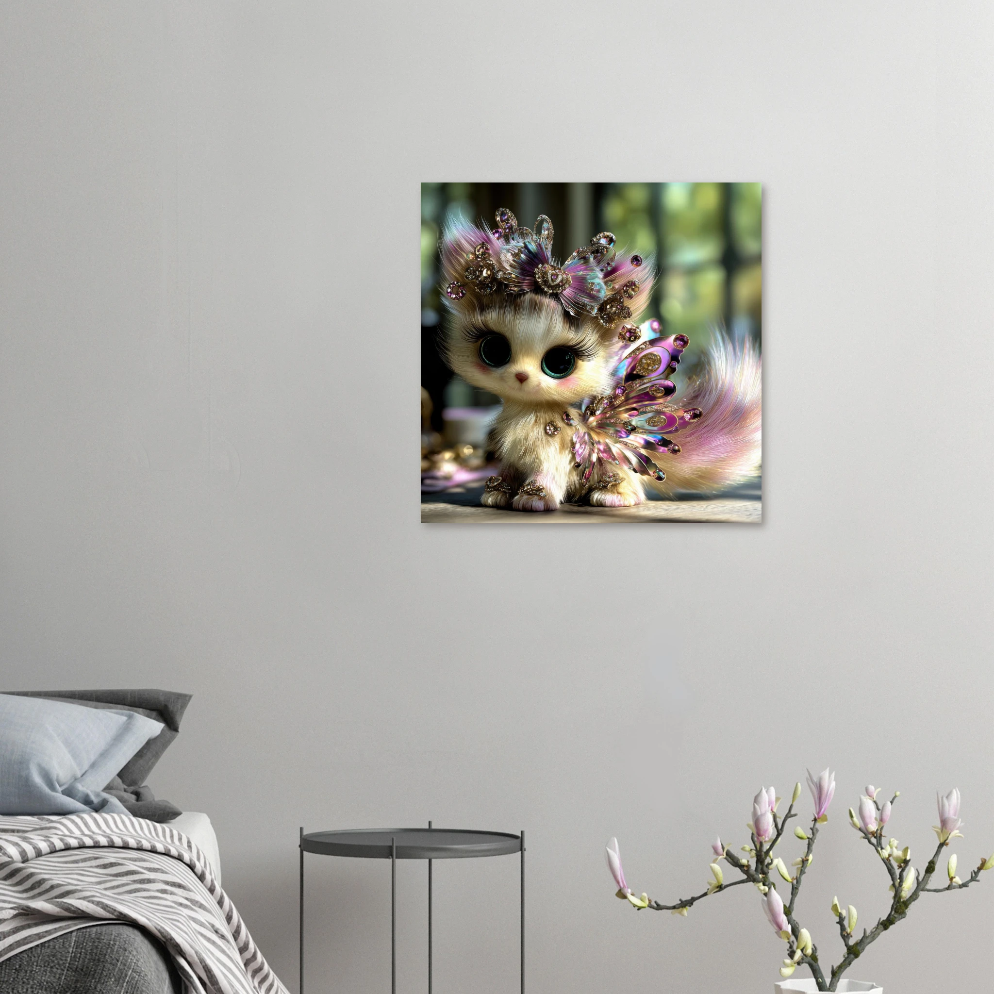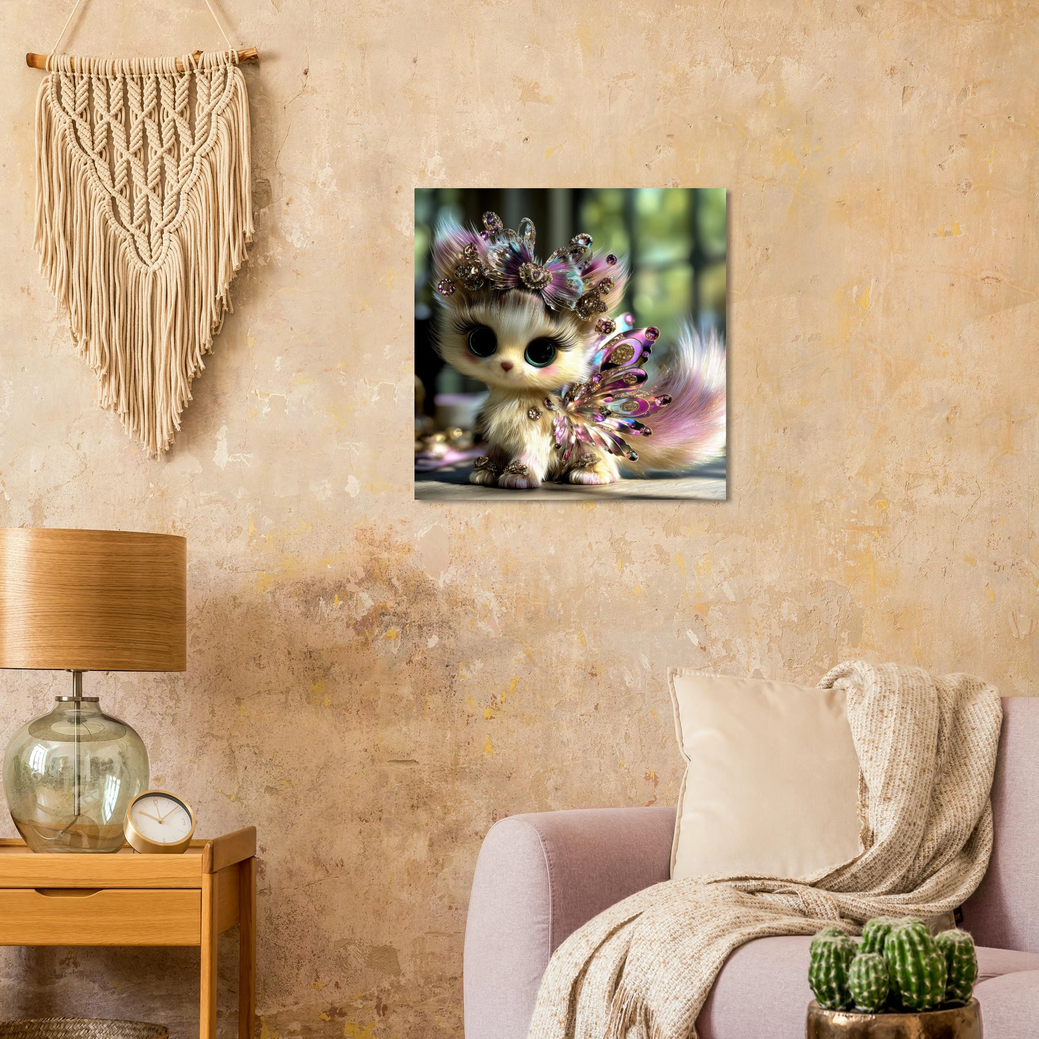 An enchanting jeweled kitten with crystal wings and luminous fur,
